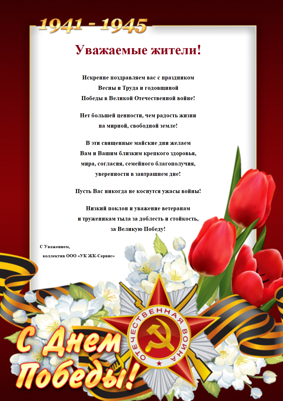 Поздравляем с праздником Весны и Труда и годовщиной Победы в Великой Отечественной войне!